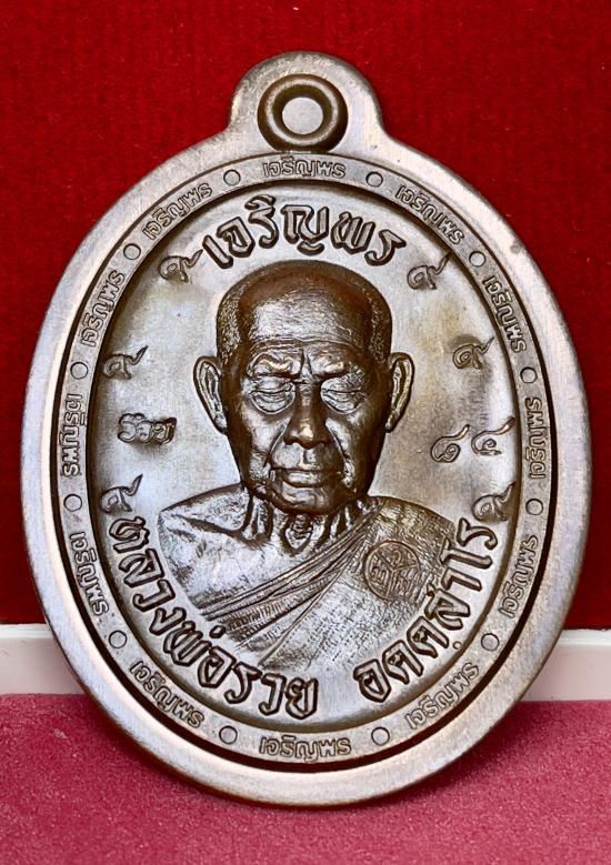 เหรียญเจริญพร3 เนื้อทองแดงเถื่อน ตอก9รอบไม่ตัดปีก เลข84 หายาก หลวงพ่อรวย วัดมาบตาพุด จ.ระยอง |