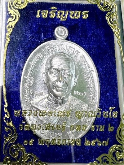 เหรียญเจริญพร เนื้อเงินพรายทองคำ หลวงพ่อเณร ญาณวินโย วัดทุ่งเศรษฐี กรุงเทพฯ