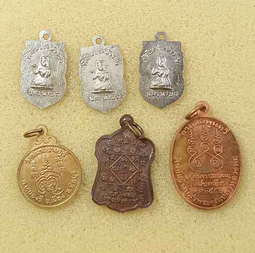 เหรียญเสมาเล็ก หลวงพ่อเณร วัดอินประชาราม นครนายก 3 เหรียญ +เหรียญหลวงพ่อสังเวียน วัดสบกเขียว นครนายก +เหรียญหลวงปู่บุญ +เหรียญหลวงปู่รอด ชลบุรี |