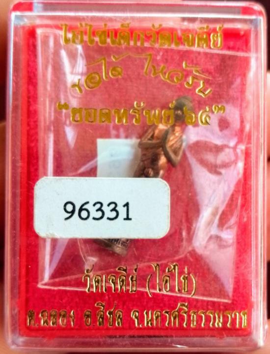 เคาะเดียวแดง.....รูปหล่อลอยองค์ ไอ้ไข่เด็กวัดเจดีย์ จังหวัดนครศรีธรรมราช รุ่นยอดทรัพย์ 64 หมายเลข 96331 กล่องเดิม |