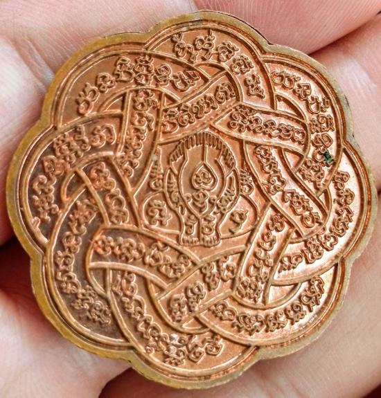 เคาะเดียวแดง.....เหรียญยันต์ตะกร้อ เนื้อทองแดง หลวงปู่กาหลง ปี 2550 ตอกโค๊ตและ Number 14495 |