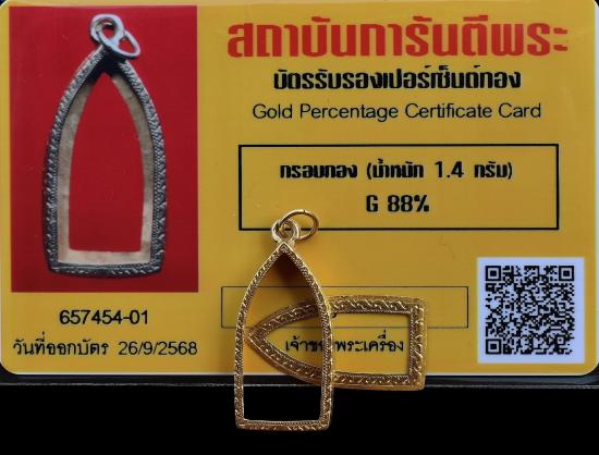 *** เคาะเดียวแดง ทุกรายการ *** กรอบทอง มือสอง G 88 % (น้ำหนัก 1.4 กรัม) มีบัตรรับรองเปอร์เซ็นต์ทองการันตีพระ สภาพตามรูป