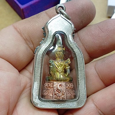 พระแก้วมรกต กรมสรรพสามิตจัดสร้าง วัดพระศรีรัตนศาสดารามเนื้อเงินสามกษัตริย์ โค๊ด 3 ปี 2539 พร้อมเลี่ยมกรอบเงินแท้ 92.5% ขึ้น งานมือ กรอบหนา รมดำ สวยๆ... |