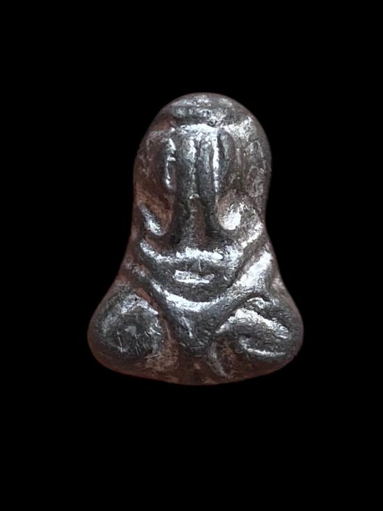 พระปิดตาเนื้อชินตะกั่ว มวลสารแน่นหนึก มีประกายเหล็กน้ำพี้ ผิวเดิมแห้งสนิทไม่ผ่านการล้างหรือขัดแต่ง ด้านหลังมีโค๊ดตอกชัดแสดงถึงการสร้างพิธีดี พระลักษณะเล็กกระทัดรัดแต่เปี่ยมพลัง