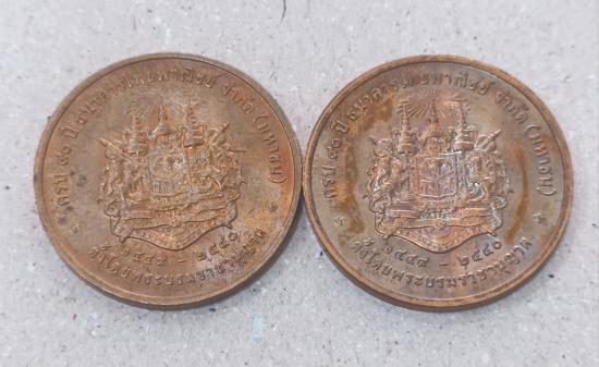 เหรียญ ร.5 ครบรอบ 90 ปี ไทยพาณิชย์ 2540 เนื้อทองแดง 2 เหรียญ สวยๆ
