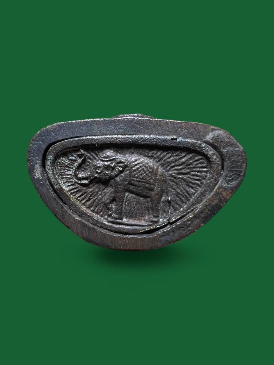 พระกริ่งรวมดวงใจเพื่อสายใจไทย มูลนิธิสายใจไทย วัดป่าชัยรังสี จังหวัดสมุทรสาคร เมื่อ 25 สิงหาคม 2532 สวย...ด้านหน้าอัญเชิญตราของสมเด็จพระเทพรัตน์ ฐานองค์พระเป็นรูปช้าง สภาพเดิม |