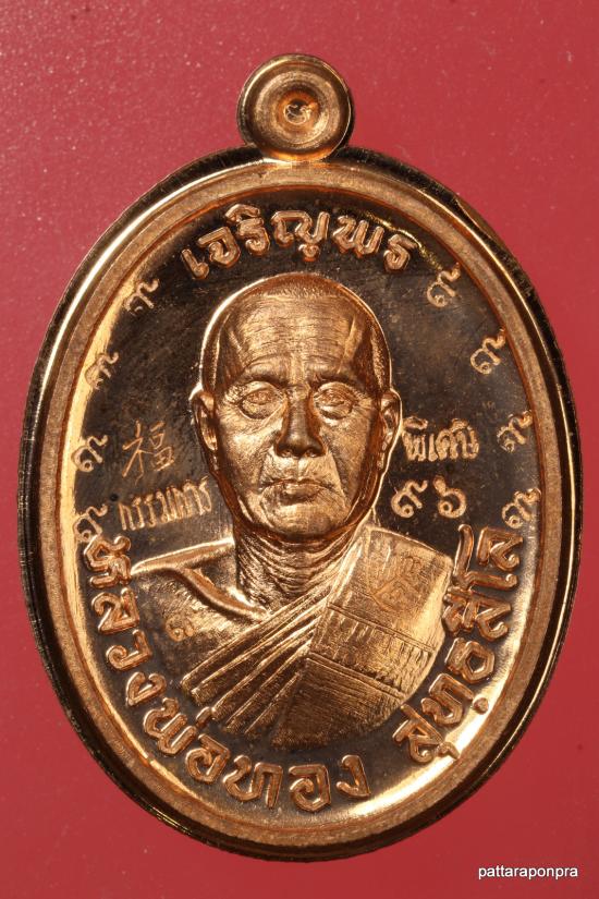 เหรียญหลวงพ่อทอง รุ่นเจริญพรบน๖๓ ปี 2563 เนื้อทองแดงไม่ตักปีกหลังเรียบ หมายเลข 96 |