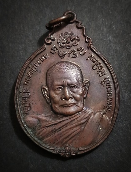 เหรียญรุ่นสร้างโรงพยาบาล หลวงปู่แหวน วัดดอยแม่ปั๋ง พิมพ์หลังภปร. เนื้อทองแดง ปี 2521 |