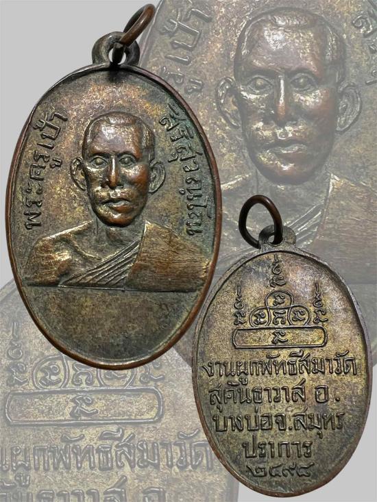 เหรียญพระครูเป้า วัดสุคันธาวาส จ.สมุทรปราการ รุ่นแรก เนื้อทองแดงกะไหล่ทอง ปี 2498 ***รับประกันการันตีความแท้*** |
