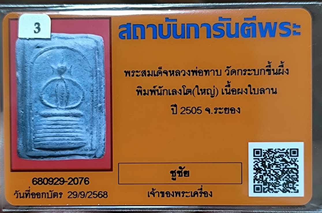 เคาะเดียวแดง 3300 สมเด็จนักเลงโต พิมพ์ใหญ่ ปี05 หลวงพ่อทาบ วัดกระบกขึ้นผึ้ง พร้อมบัตรเว็บจี |
