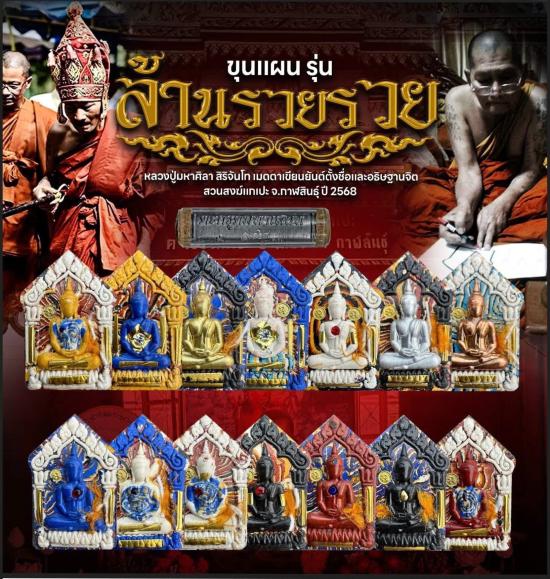 -พระขุนแผน รุ่นล้านรวยรวย ปี 2568 หลวงปู่ศิลา เมตตาเขียนยันต์ อธิษฐานจิต และตั้งชื่อรุ่นให้ เนื้อ เกษรเข้ม โรยตะใบทอง เลข 20 กล่องเดิม