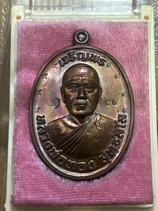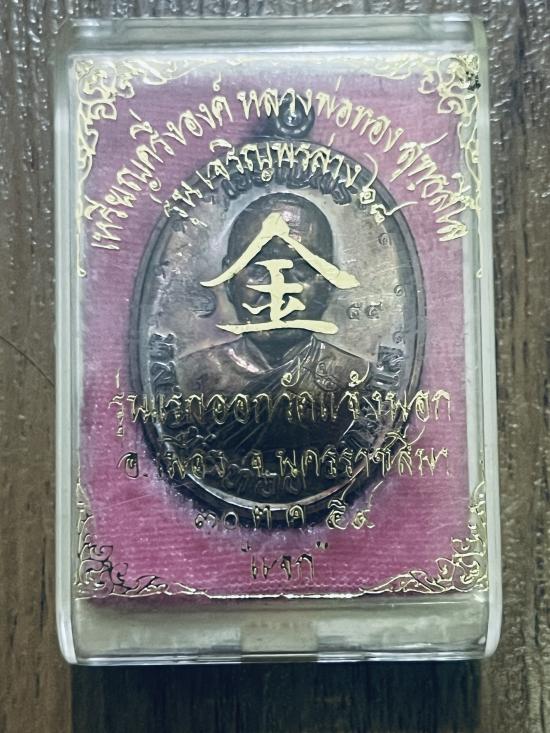 รุ่นแรกเหรียญหลวงพ่อทองรุ่นเจริญพรล่าง68 ออกวัดแจ้งนอกปี 59 พิมพ์2หน้าบน-ล่างเนื้อมหาชนวน หมายเลข 69 ตอกโค๊ตเลข9เก้าตัวแ จกอยู่ในชุดทองคำพิมพ์2หน้าสร้างแค่ 100 จารหน้า-หลัง กล่องเดิม |
