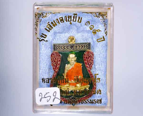 *เหรียญเสมาอายุยืน115ปี หลวงปู่อิ่ม วัดทุ่งนาใหม่ ด้านหน้า พ่อท่ายคล้าย วาจาสิทธิ์ หลังหลวงปู่อิ่ม เนื้อทองทิพย์ลงยา |