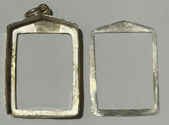 วัดใจกรอบเงินชุบทอง งานสั่งทำช่างทอง สวยๆ หนาๆ เงินแท้%สูง สภาพยังสวยใช้งานต่อได้สบาย ราคาสั่งทำมา 2000+ เอามาเลี่ยมใส่พระไว้ไม่เคยแขวน สภาพยังสวยๆ |