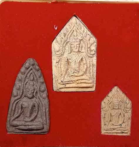 พระชุดขุนแผน 3 องค์ พิพิธภัณฑ์พระขุนแผน วัดป่าเลไลย์ สุพรรณบุรี + หูยานลพบุรีเนื้อดิน ปี43 |