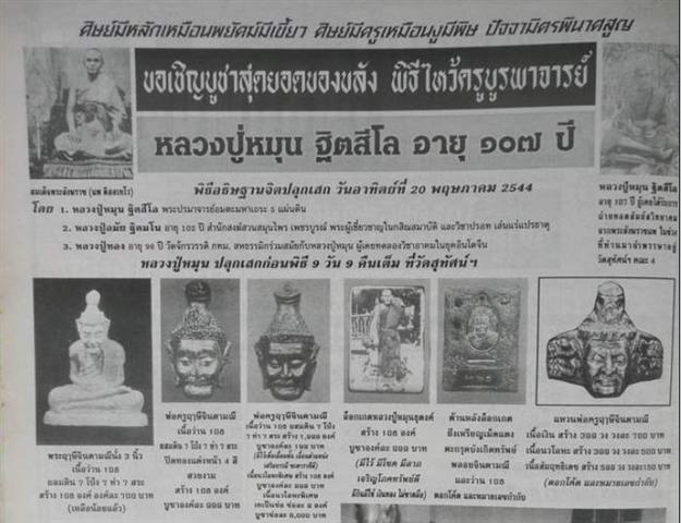 เศียรพ่อครูฤาษีจินดามณี เนื้อว่าน108 ผสมดิน 7 โป่ง 7 ท่า 7 สระ จัดสร้างเนื่องในโอกาสพิธีไหว้ครูบูรพาจารย์ ปี 2544 ณ วัดสุทัศน์ โดยหลวงปู่หมุน ปลุกเสก สร้างน้อยมาก 1999 เศียร. ตามภาพ |