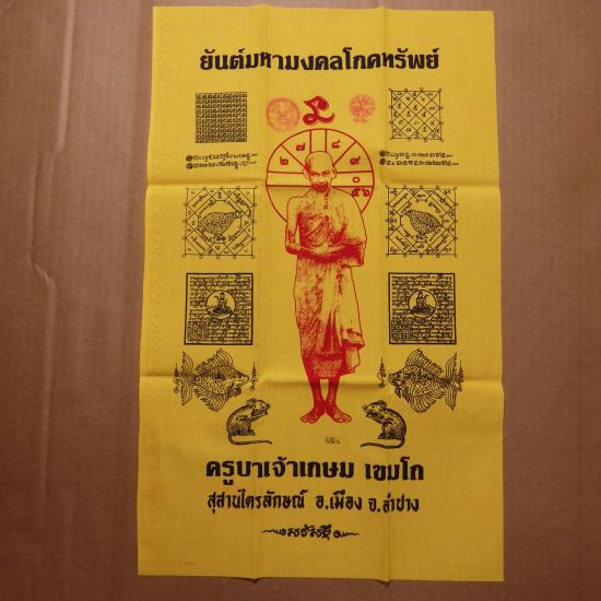 ผ้ายันต์มหามงคลโภคทรัพย์ หลวงพ่อเกษม ขนาด 11 X 17 นิ้ว ..เลข 464.....68.9.26 |