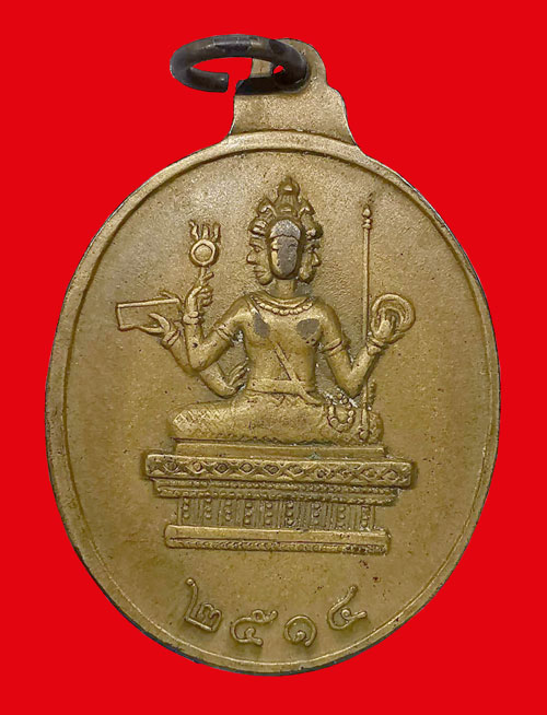 เหรียญท่านท้าวมหาพรหมเทพปฎิมา มูลนิธิพระพรหมเอราวัณสร้าง เนื้อทองเหลือง ห่วงเดิม ปี2514 จ.กรุงเทพฯ |