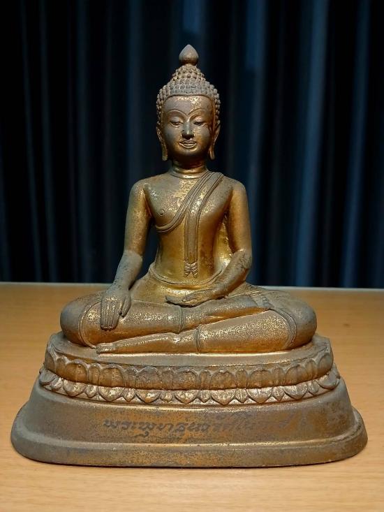 พระพุทธนวรัตโมภาส (หลวงพ่อโต) วัดบ่อตะกั่ว นครปฐม หน้าตัก 5 นิ้ว เนื้อทองเหลือง หล่อหนา ศิลป์สวย