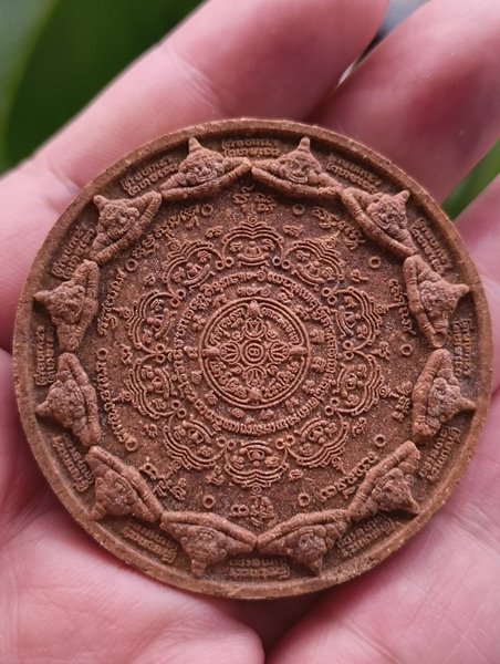 ปฐมอรหันต์สุวรรณภูมิ 2547 เนื้อว่านไม้มงคล ธรรมจักร ไม่มีองค์พระ ขนาด5ซ.ม.