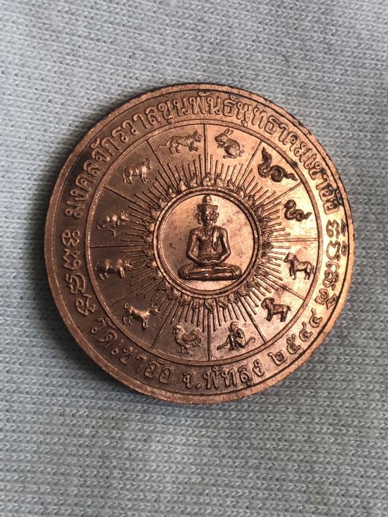 มงคลจักรวาลขุนพันธ์พุทธาคมเขาอ้อ เหรียญ ปิดตาพังพกาฬ รุ่นแรก ปี 2544 เนื้อทองแดง ขนาด 3.2 ซม. |