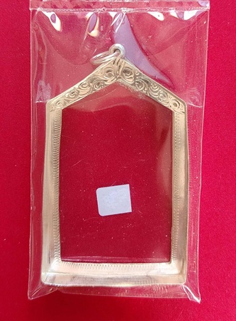 กรอบเงินแท้ สำหรับรูปถ่ายหลวงพ่อกวย งานแกะมือ ยกซุ้ม โชว์ห่วง
