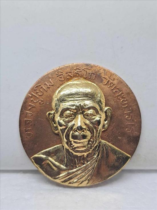 เหรียญบาตรน้ำมนต์ หลวงปู่ทิม ทองแดง-หน้ากากทอง ที่ระลึกงานประกวดพระเครื่อง จักรวาลพระฯ ปี31 ขนาด 4 ซม. สวย พร้อมบูชา