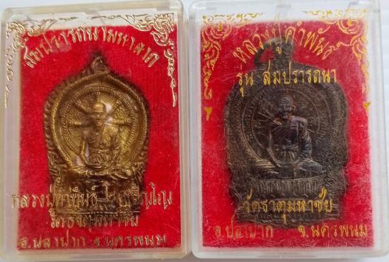 เหรียญหล่อนั่งพาน รุ่นสมปรารถนา หลวงปู่คำพันธ์ วัดธาตุมหาชัย ปี ๒๕๓๗ และเหรียญนั่งพานรุ่นแรก (สมปรารถนา) รับจำนวน 2 เหรียญ พร้อมกล่องเดิมสภาพสวย |