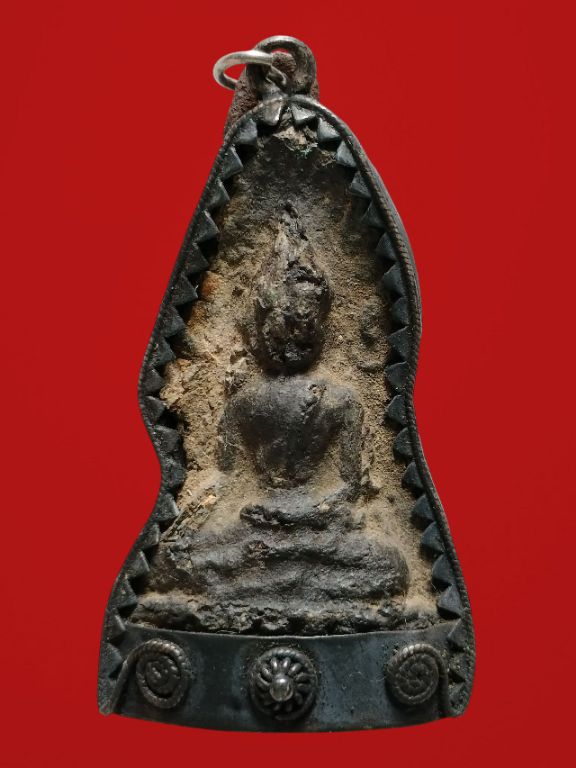 พระกรุ เนื้อชินเงิน ไม่รู้ว่ากรุไหน เลี่ยมเงินลายดอกพิกุล โบราณ