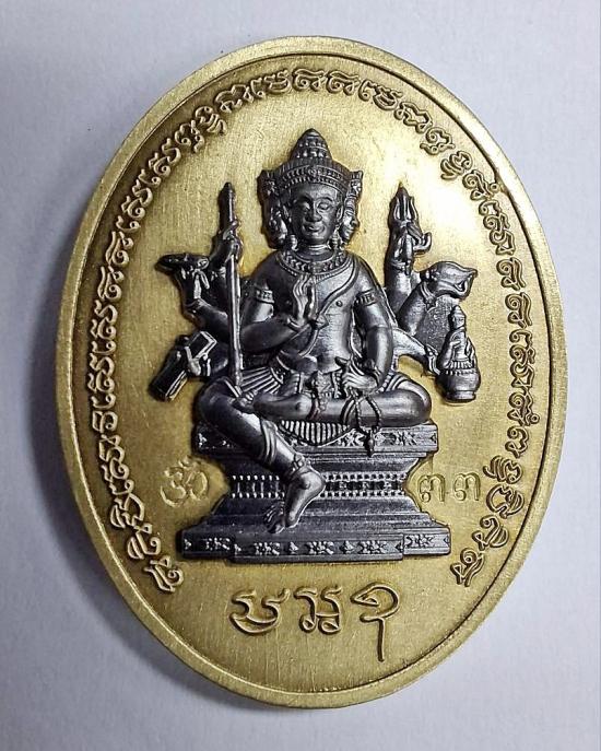 เหรียญพระพิฆเนศ รุ่น อิ่มทรัพย์ -- หลวงปู่อิ่ม วัดทุ่งนาใหม่ -- ทองทิพย์ซาตินลงยาส้ม หน้ากากนวะ หลังหน้ากากพระพรหมนวะ เลข ๓๓ -- |