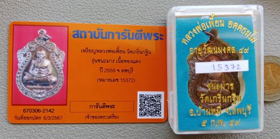 เหรียญหลวงพ่อเพี้ยน วัดเกริ่นกฐิน จ.ลพบุรี ปี2559 รุ่นชนะมาร เนื้อทองแดง หมายเลข กล่องเดิม พร้อมบัตรรับรอง ตามรูปครับ