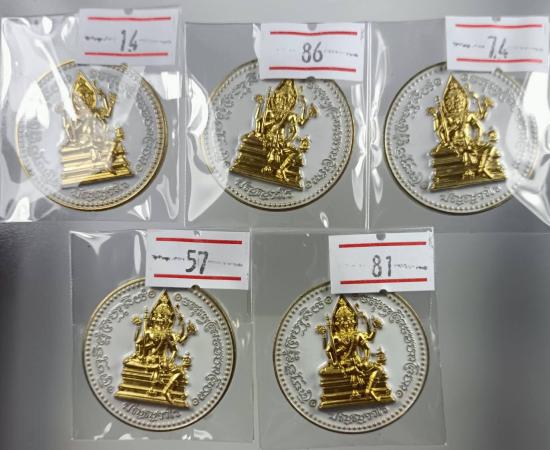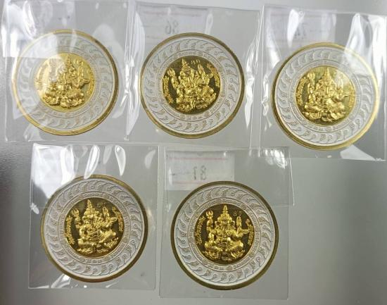 5 เหรียญ...เหรียญพระพรหม หลังพระพิฆเนศ หลวงปู่เถิง วัดบ้านอาลัย จ.ศรีษะเกษ เนื้อทองทิพย์ ลงยาขาวหน้า-หลัง หมายเลข 2 หลัก เคาะเดียว *1 |