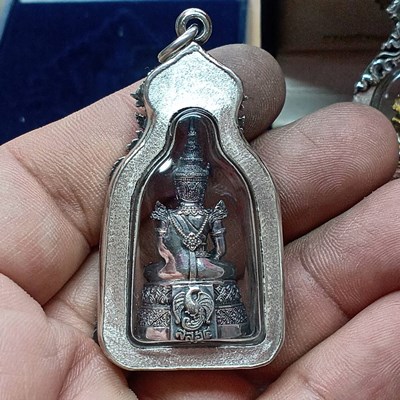 พระแก้วมรกต กรมสรรพสามิตจัดสร้าง วัดพระศรีรัตนศาสดาราม เนื้อเงิน ปี 2539 พร้อมเลี่ยมกรอบเงินแท้ 92.5% ขึ้น งานมือ กรอบหนา รมดำ สวยๆ.. กล่องเดิม |