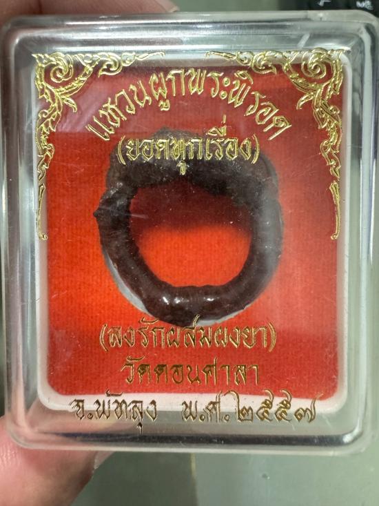 แหวนผูกพระพิรอดเขาอ้อ วัดดอนศาลา ขนาดใหญ่ ทำด้วยหวาย ลงรักผสมผงยา (ยอดทุกเรื่อง) ปี 2557 จัดสร้างตามตำราเขาอ้อ ทุกประการ