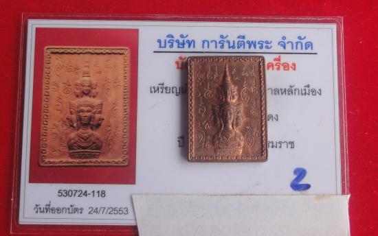 ชื่อพระเครื่อง +++ เหรียญแสตมป์ หลักเมือง รุ่นแรก พร้อมบัตร เก็บมานาน ตอนนี้ยอม เบาๆๆ+++