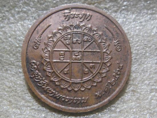 ช่องว่างระหว่างเหรียญลงจารมือด้วย อิสวาสุ หมายถึงหัวใจของพระพุทธเจ้าและตอกโค้ต ๙ หมายถึงความเจริญก้าวหน้าตลอดไปสำหรับผู้ใช้เหรียญนี้