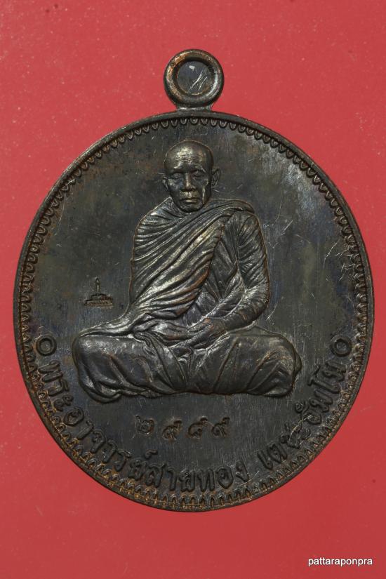 เหรียญหลวงพ่อสายทอง รุ่นประวัติศาสตร์ไตรภาคี ปี 2558 เนื้อทองแดงรมดำ หมายเลข 2989 |