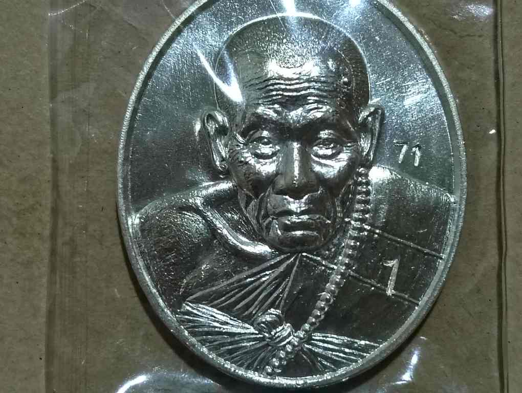 วัดใจ เหรียญตอก1 เนื้อเงินหมายเลข 71 เลขสวย หลวงปู่ขาง อิทปัญโญ สํานักปฎิบัติธรรมหนองอ้อ ต.วังเย็น อ. เมือง จังหวัดมุกดาหาร