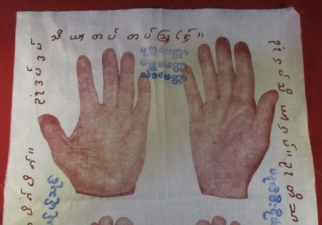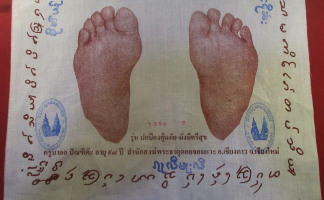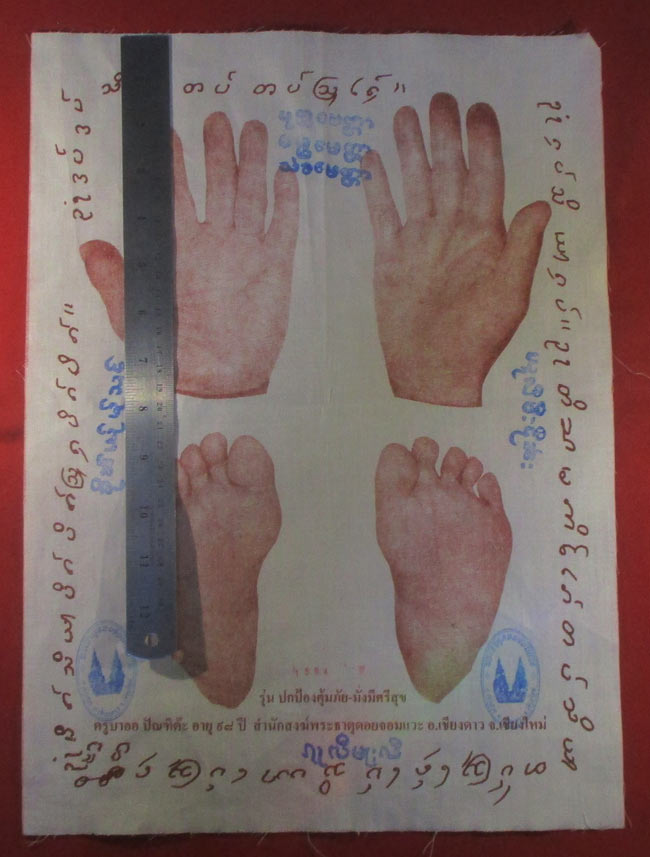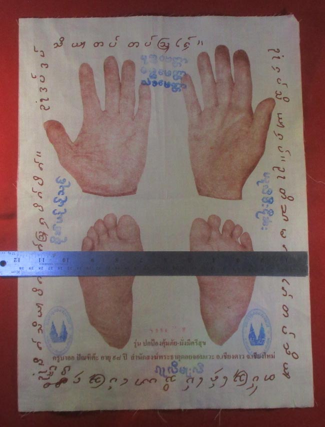 ผ้ายันต์ รอยมือ รอยท้าว ครูบออ ปัณฑิต๊ะ อายุ ๙๘ ปี