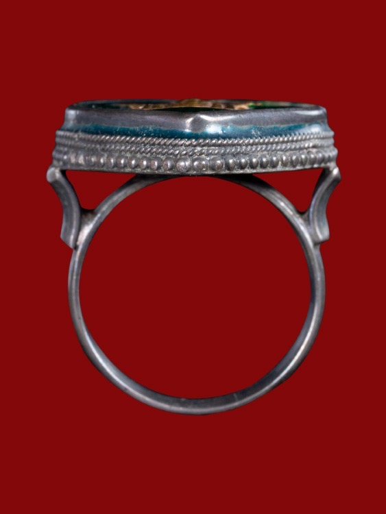 แหวนเงินลงยาสีเขียว***หน้าทองคำ***พระแม่อุมา ***ไม่ทราบที่