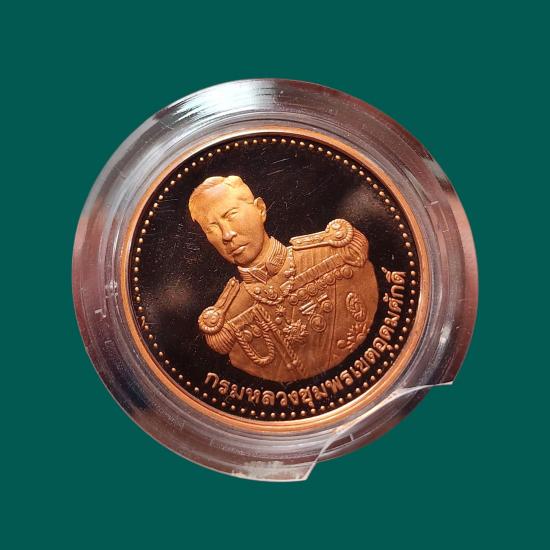 เหรียญทองแดงขัดเงา กรมหลวงชุมพร หลวงพ่อเงิน พ.ศ.2537 สภาพสวยตามรูป |