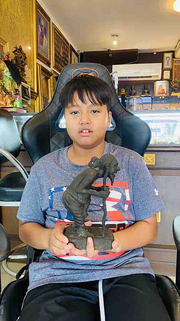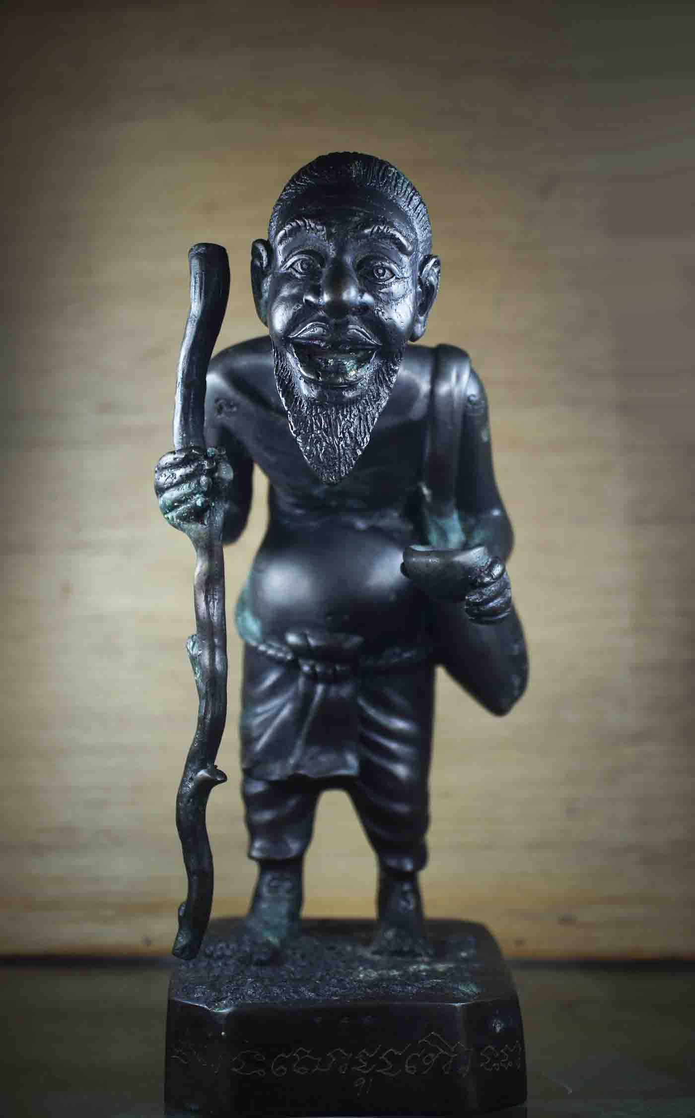 พระบูชา ชูชก รุ่นแรก ปี 2550 หลวงพ่อสาคร วัดหนองกรับ ออกสำนักสงฆ์ วัดเขาเนินหย่อง ระยอง ก้นอุดผงพรายกุมาร ตระกรุตเงิน สาริกาคู่ ฝังเหรียญ ชูชก เนื้อทองเหลืองลมดำ สร้างน้อย 300 องค์ **ขนาด สูง 9 นิ้ |
