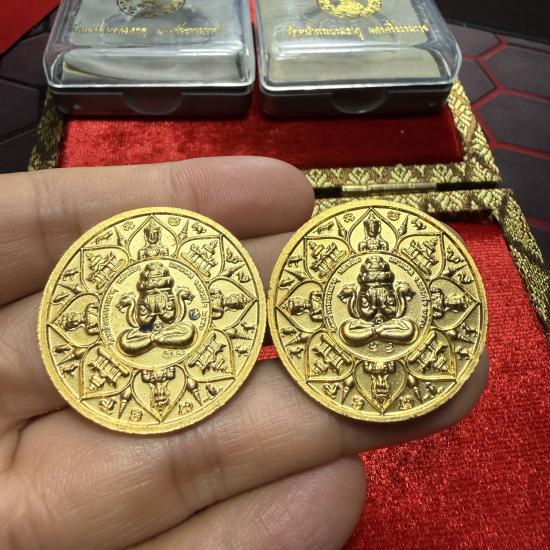 เหรียญ 3.2 cm หลักเมืองมหามงคล ลงยาแดง ลงยาน้ำเงิน 2 โค๊ต 2 องค์ -120- เคาะเดียว