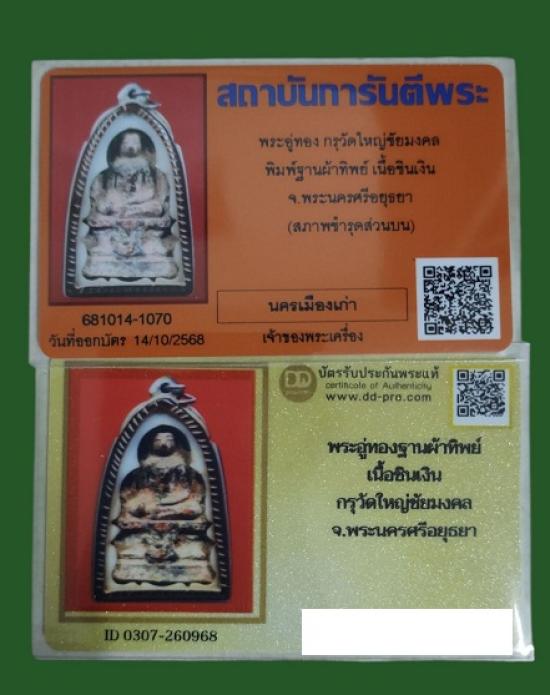 พระอู่ทองฐานผ้าทิพย์ กรุวัดใหญ่ชัยมงคล อยุธยา