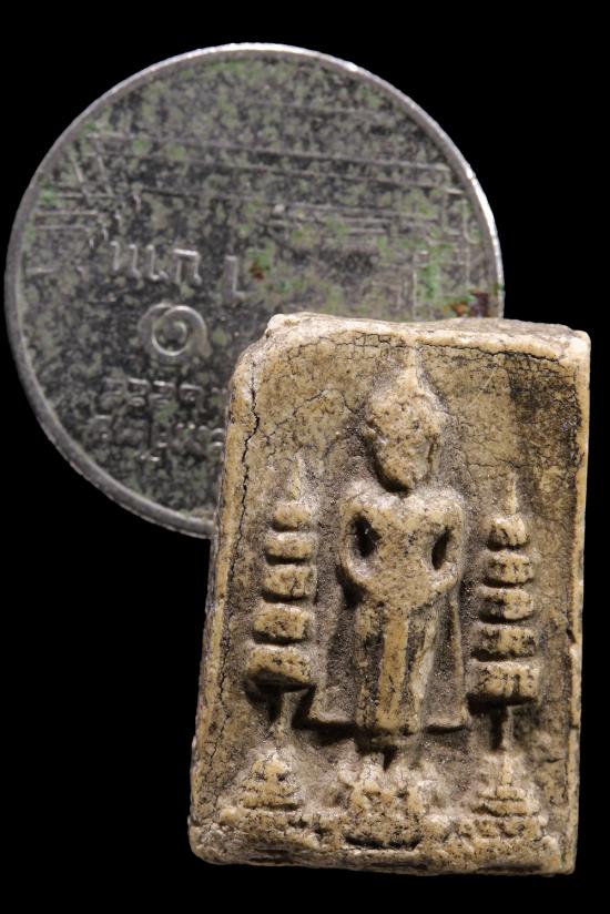 พระเนื้อผงเก่า พิมพ์ข้างฉัตร ปางพระยืนไม่ทราบที่ |
