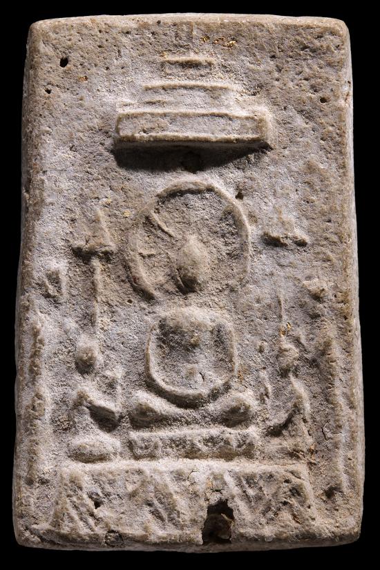 พระเนื้อผงเก่า พิมพ์ปรกฉัตร ข้างบริวาร เนื้อหาสยไม่ทราบที่ |