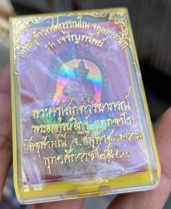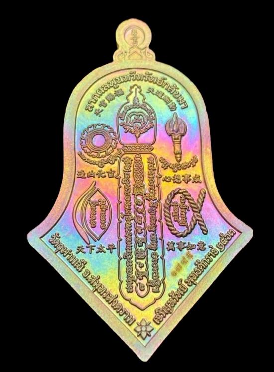 เหรียญท้าวเวสสุวรรณโณ หลวงพ่ออิฏฐ์ วัดจุฬามณี รุ่น เจริญทรัพย์ พิมพ์จำปีใหญ่(จัมโบ้) เนื้อทองประกายรุ้ง ปี 2563 สภาพสวย จมูกโด่งๆ พร้อมเลี่ยม กล่องเดิมครบ |
