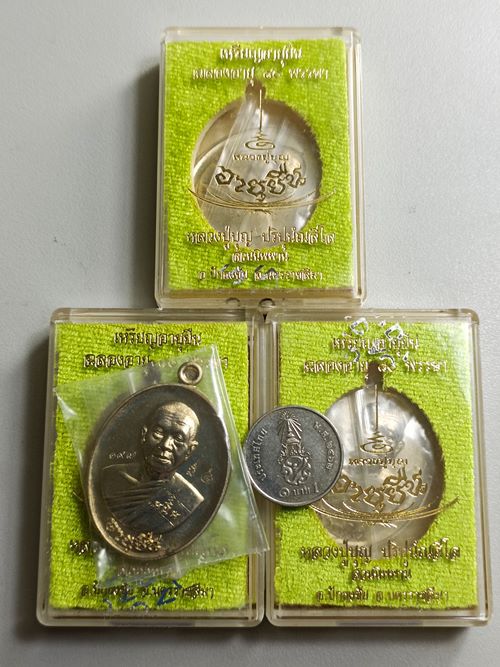 " วัดใจ เคาะเดียวแดง " เหรียญอายุยืน ฉลองอายุ 80 พรรษา หลวงปู่บุญ ปริปุนณสีโล วัดปอแดง (สวนนิพพาน) จ.นครราชสีมา ปี 2558 เนื้ออัลปาก้า จำนวน 3 เหรียญ |