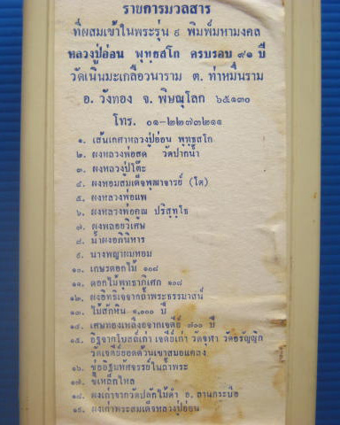 พระเนื้อผง รุ่น 9 พิมพ์มหามงคล หลวงปู่อ่อน พุทธสโก ครบรอบ 91 ปี วัดเนินมะเกลือวราราม วังทอง พิษณุโลก มวลสารเยี่ยม เคาะเดียวแดงครับ |