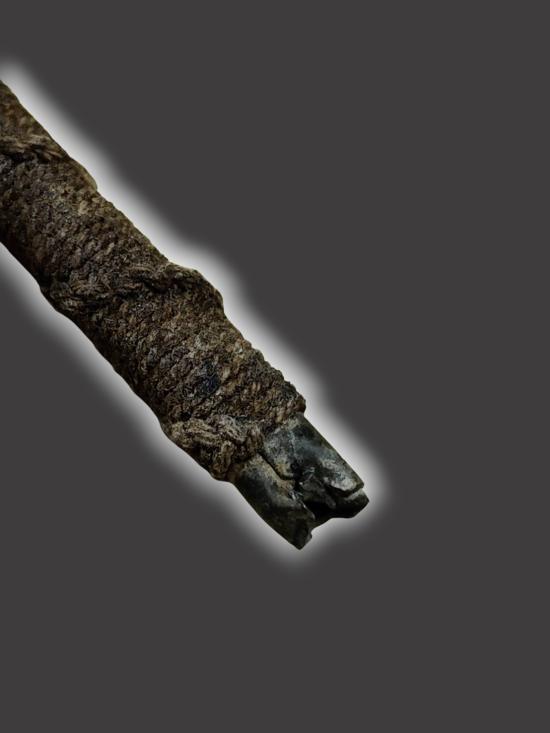 A2305.วัดใจ ตะกรุดเก่า ไม่ทราบที่ เคาะเดียวเเดง ยาว 3 นิ้ว |